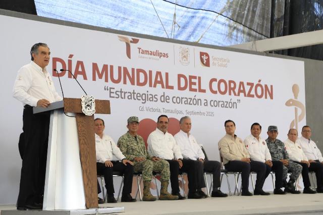 Ciudad Victoria, Tamaulipas.- En el marco de la conmemoración del Día Mundial del Corazón, el gobernador Américo Villarreal Anaya convocó a todo el personal del sector salud a ser educadores de las y los tamaulipecos y reforzar el cuidado de los factores de riesgo promoviendo estilos de vida saludables, lo que permitirá continuar la reducción de la mortalidad de pacientes hospitalizados por infarto agudo de miocardio, que en lo que va de la administración ha disminuido en un 25 por ciento.