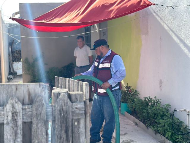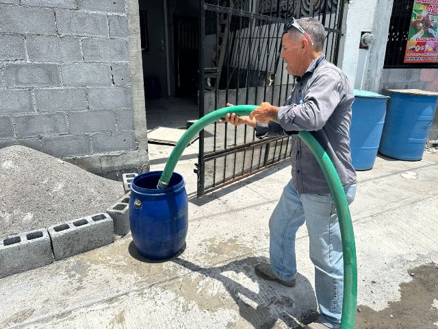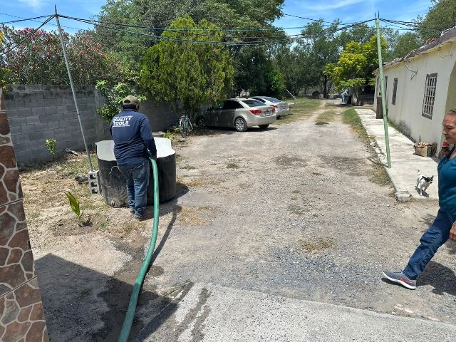 Reynosa, Tam.- El Gobierno Municipal de Reynosa, que preside el Alcalde Carlos Peña Ortiz, distribuye agua potable en colonias que enfrentan déficit debido a la baja captación del río Bravo, como Villa el Nogal, Villa Florida, Los Olivos y Villa Real.