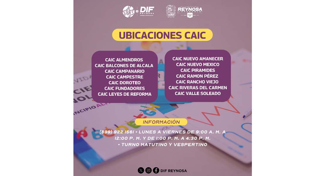 Abre DIF-Reynosa inscripciones en los CAIC