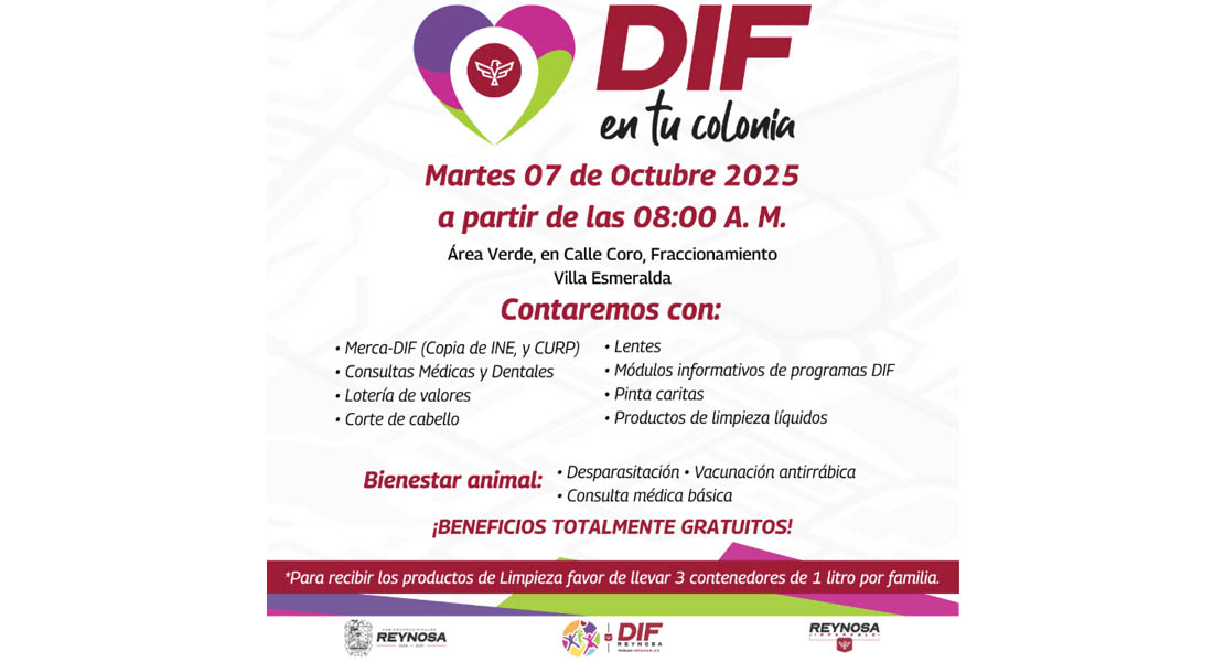 Acercará DIF-Reynosa servicios gratuitos al fraccionamiento Villa Esmeralda