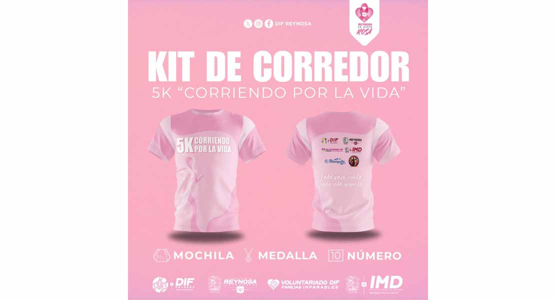 Reynosa, Tam.- El Sistema DIF-Reynosa, que preside Carlos Luis Peña Garza, a través del Voluntariado DIF, encabezado por Alejandra Yelitza Garza, invita a la ciudadanía a participar en la carrera con causa “Corriendo por la Vida 5K”, un evento deportivo y solidario en apoyo a la lucha contra el cáncer de mama.