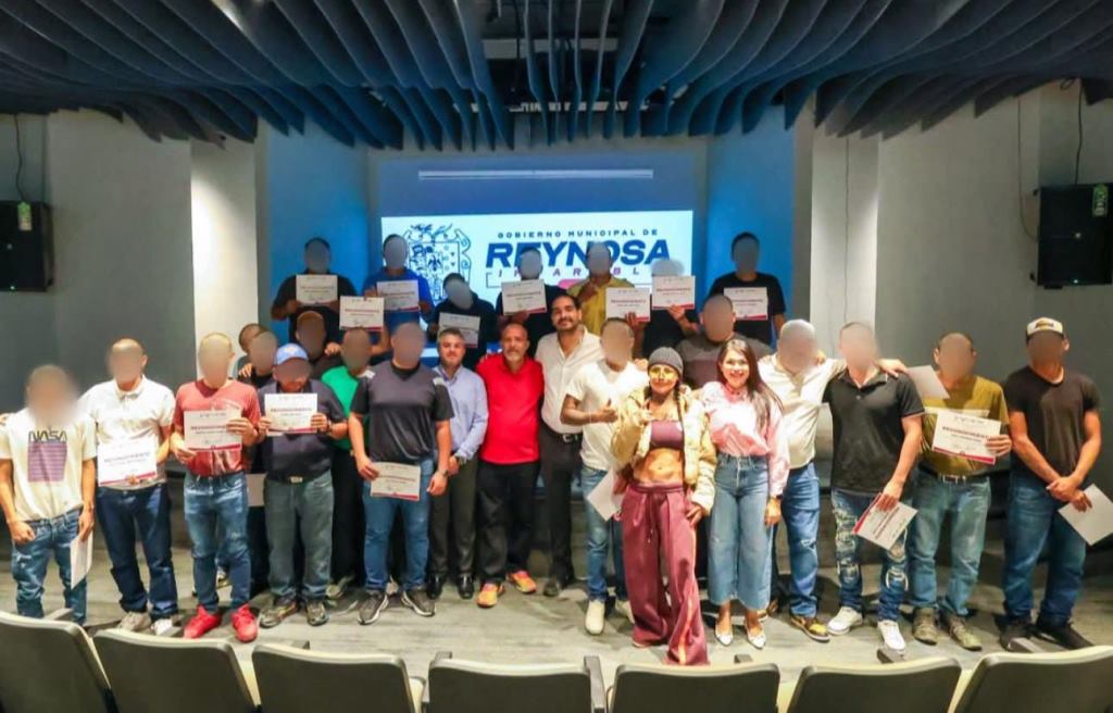 Reynosa, Tam.- El Presidente Municipal Carlos Peña Ortiz, acompañado por la campeona mundial de box Mariana «La Barbie» Juárez, entregó reconocimientos a una nueva generación de egresados del programa social Tazo Dorado, que impulsa una nueva vida con más oportunidades para quienes sufre de problemas de adicción.