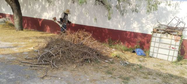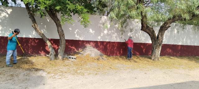Este día, sábado 6 de septiembre cuadrillas del R. Ayuntamiento trabajan en la limpieza, chapoleo y saneamiento del kínder Elizabeth Galván de Lozano de la colonia Jesús Vega Sanchez.