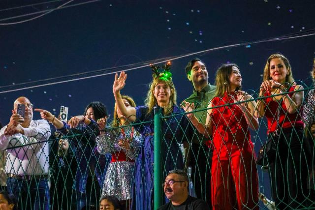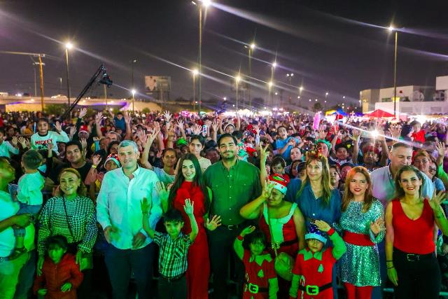 Reynosa, Tam.- El Alcalde Carlos Peña Ortiz dio la bienvenida en el Polideportivo al Desfile Navideño Reynosa 2025 de Coca-Cola Arca Continental que fue apreciado por miles de reynosenses; estuvo acompañado por su esposa Alejandra Yelitza Garza, por la Senadora de la República, Maki Esther Ortiz Domínguez, por el Presidente del Patronato del DIF, Carlos Luis Peña Garza y miles de niños, jóvenes y adultos.