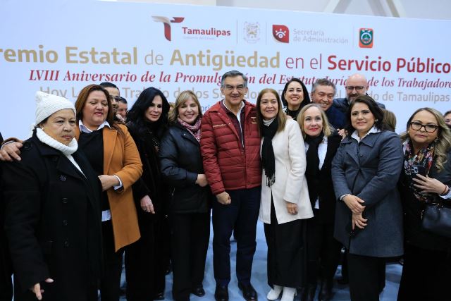 Durante la ceremonia en el Polyforum de esta capital, en la que se entregaron de manera simbólica 23 reconocimientos, medallas y estímulos económicos de un total de 1,453 a trabajadores que han cumplido entre 20 y 55 años de servicio en el Gobierno de Tamaulipas, el jefe del Ejecutivo estatal se refirió a la visita que realizó la presidenta Claudia Sheinbaum, quien trajo grandes beneficios y oportunidades para el desarrollo del estado y para seguir logrando el bienestar y la justicia social, así como coadyuvar al crecimiento y desarrollo de nuestra nación.