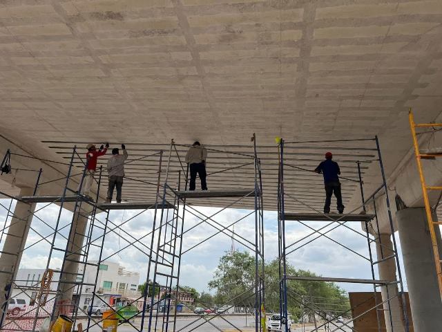 Mediante un programa técnico elaborado por la Secretaría de Obras Públicas, ya se registra un gran avance en la rehabilitación del paso elevado que cruza sobre las vías del ferrocarril en la zona céntrica de Reynosa.