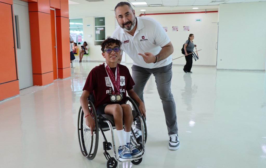 Reynosa, Tam.- El Alcalde Carlos Peña Ortiz felicitó al nadador Santiago Fonseca Ramírez por su extraordinaria participación en la Paraolimpiada Nacional CONADE 2025, celebrada en Aguascalientes, donde logró conquistar un total de 5 medallas, poniendo en alto el nombre de Reynosa y de Tamaulipas.