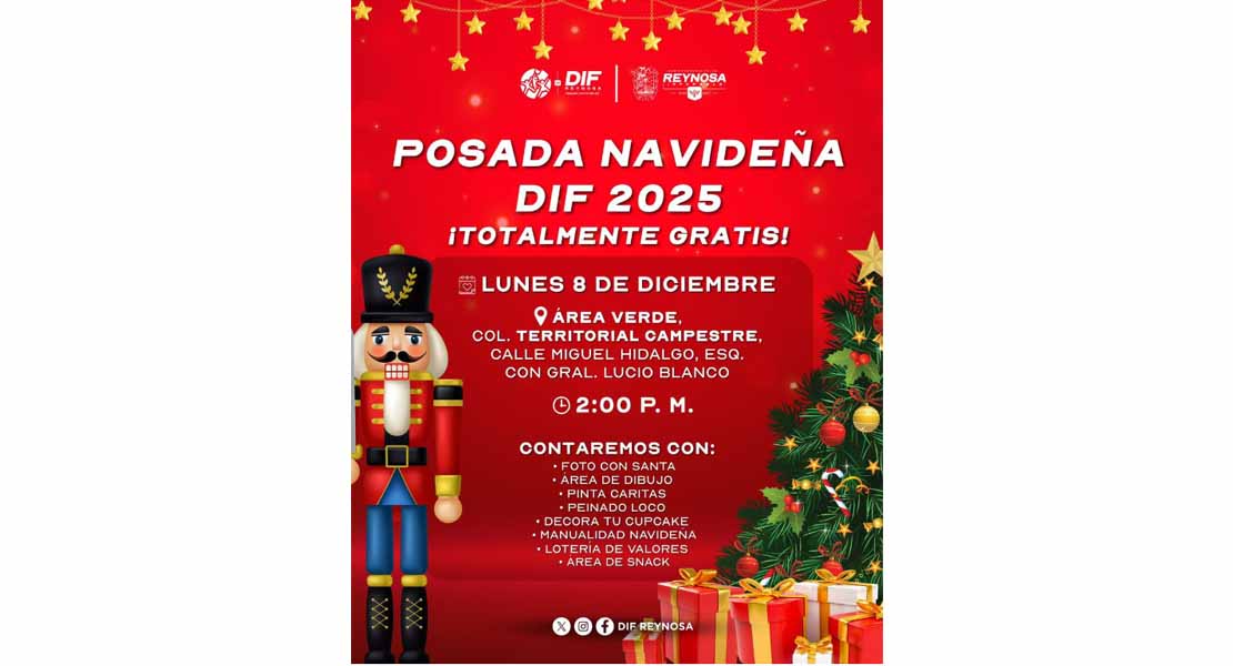 Reynosa, Tam.- El Alcalde, Carlos Peña Ortiz y el DIF-Reynosa invitan a las familias a disfrutar de forma gratuita las Posadas Navideñas 2025.