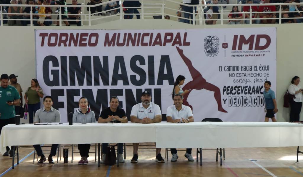 Reynosa, Tam.- El Alcalde Carlos Peña Ortiz, continúa impulsando el desarrollo deportivo en la ciudad, y en esta ocasión brindó su respaldo para la realización del Torneo Municipal de Gimnasia, evento que reunió a talentosas niñas de diversas escuelas locales.
