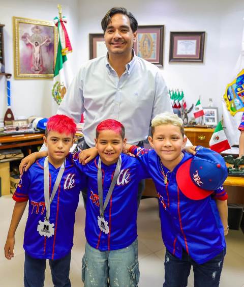 Celebraron el Alcalde Carlos Peña Ortiz y peloteritos de la Treviño Kelly triunfo nacional
