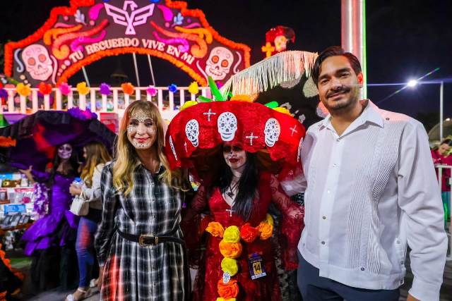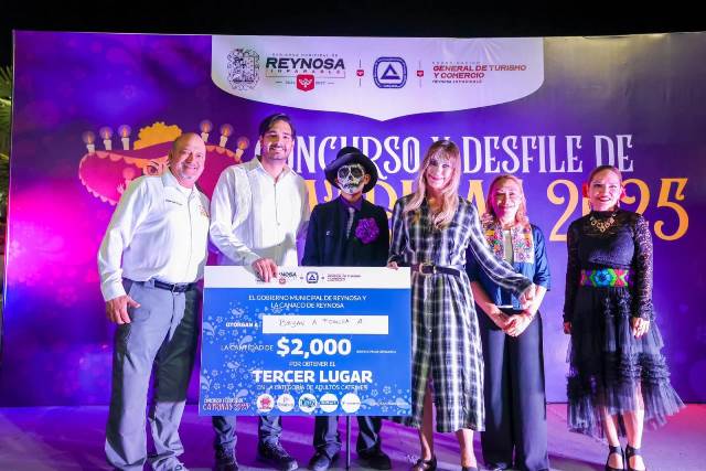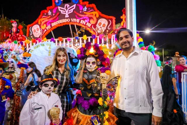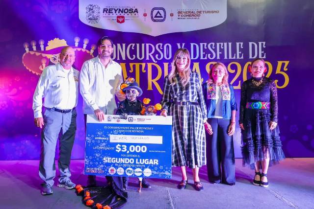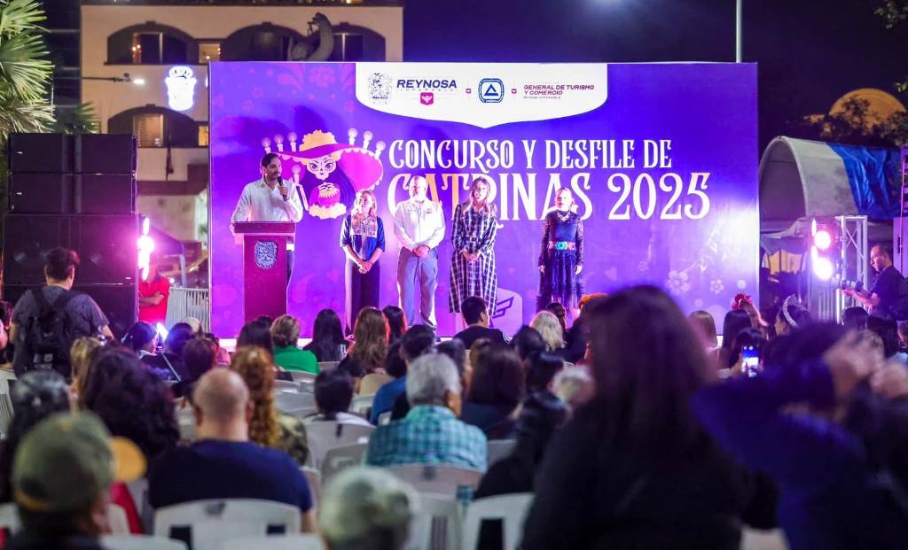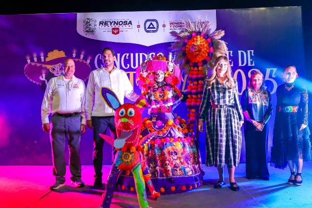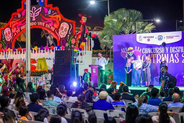 Reynosa, Tam.- El Alcalde Carlos Peña Ortiz, junto con el líder de la Cámara de Comercio, Servicios y Turismo de Reynosa, CANACO, Gildardo López Hinojosa, acompañado también por la Senadora Maki Esther Ortiz Domínguez, presidió el Concurso y Desfile de Catrinas 2025, que celebró la extraordinaria herencia cultural mexicana, de tradiciones únicas, con un significado especial sobre el fin de la vida y la trascendencia del ser.