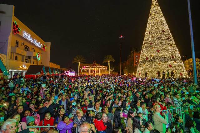 Reynosa, Tam.- En un cálido ambiente con más de 10 Mil reynosenses, el Alcalde Carlos Peña Ortiz, acompañado por su esposa Alejandra Yelitza Garza, encabezó el tradicional Encendido del Pino 2025 de 27 metros de altura y 5,950 metros de luces, en la plaza Miguel Hidalgo, marcando el inicio de la temporada navideña en la ciudad, también con el Concierto de Tatiana, La Reina de los Niños y la puesta en marcha del Carrusel Infantil.
