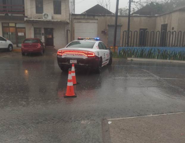 Cierra Policía Vial calles con acumulación de agua en Reynosa