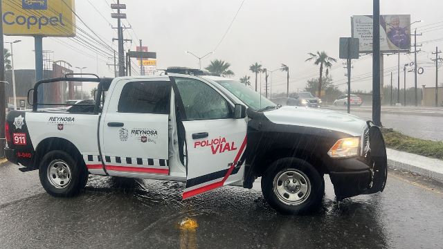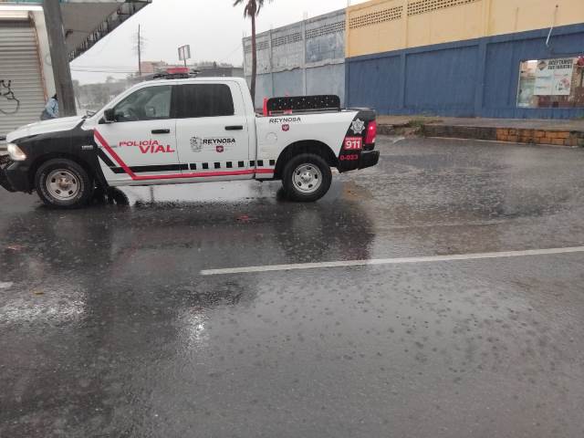 Cierra Policía Vial calles con acumulación de agua en Reynosa