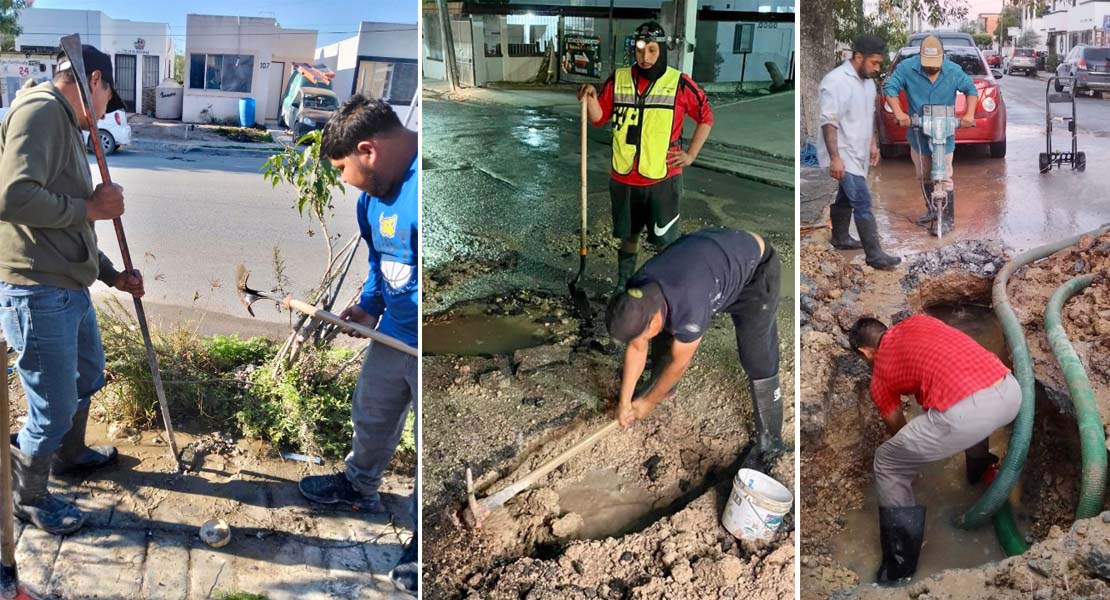 Reynosa, Tam.- Las cuadrillas de la Comisión Municipal de Agua Potable y Alcantarillado de Reynosa realizan labores de manera permanente para atender reportes ciudadanos relacionados con fugas, con el objetivo de evitar el desperdicio del vital líquido y garantizar un mejor servicio a la población.