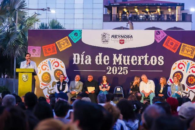 «Gracias por acompañarnos en nuestra hermosa plaza principal este Día de Muertos 2025. Esta es una tradición muy mexicana, en donde recordamos a todos aquellos que se nos adelantaron y que son parte fundamental de lo que hoy somos», dijo el Alcalde en compañía de su esposa Alejandra Yelitza Garza, y de Carlos Luis Peña Garza, Presidente del Patronato del DIF-Reynosa.