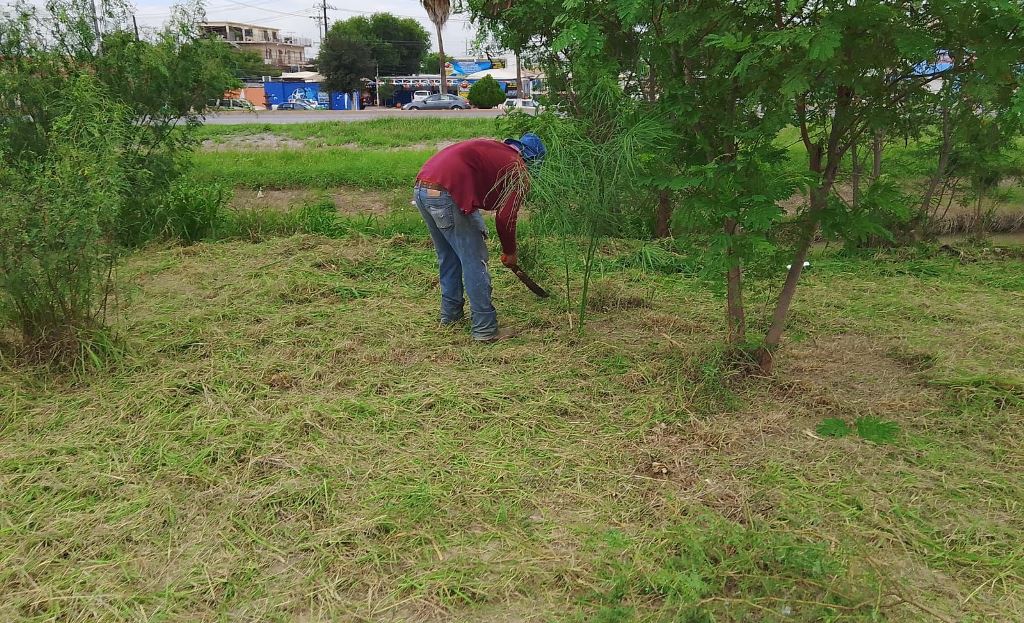 Las cuadrillas de la Secretaría de Servicios Públicos cortaron la maleza y realizaron la poda de los árboles circundantes a las canchas, frente a la colonia Ribereña, para asegurar un entorno libre de riesgos por fauna nociva.