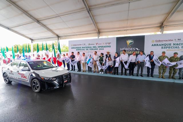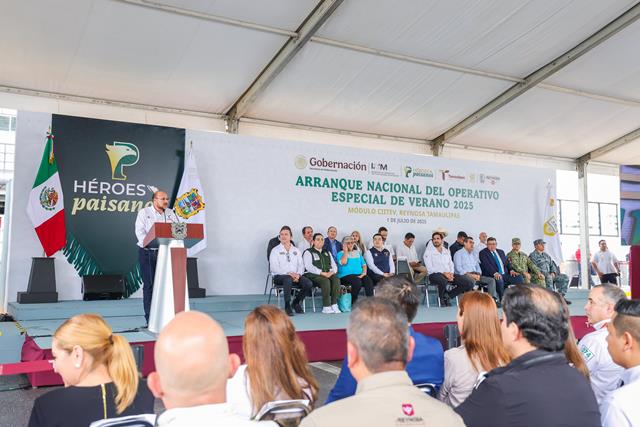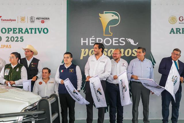 Reynosa, Tam.- El Presidente Municipal Carlos Peña Ortiz participó en la Ceremonia de Arranque Nacional del Operativo Especial de Verano 2025 del Programa Héroes Paisanos, llevado a cabo en el Módulo CITEV del recinto aduanal local, donde con la presencia del Secretario General de Gobierno, Héctor Joel Villegas González, representante del Gobernador Constitucional de Tamaulipas, Doctor Américo Villarreal Anaya se dio el banderzo de salida.