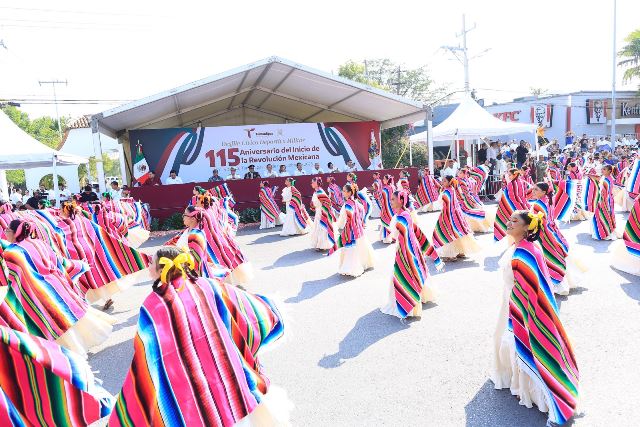 Desfilan miles de jóvenes en el 115 aniversario de la Revolución Mexicana