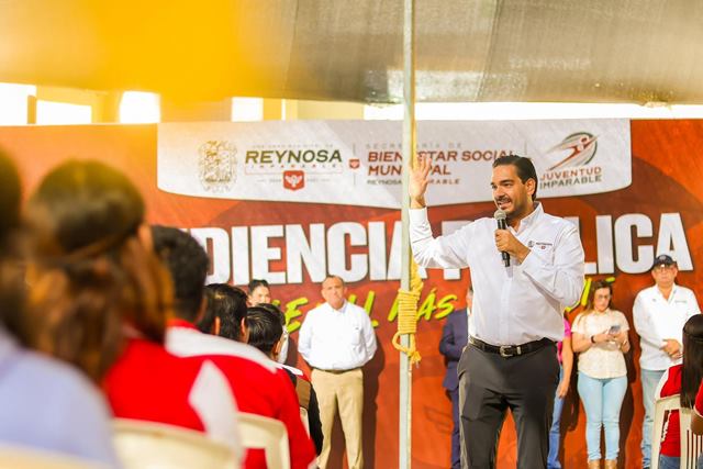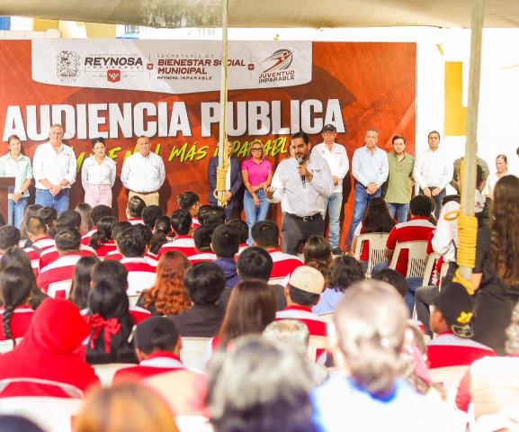 Reynosa, Tam.- El Gobierno Municipal de Reynosa, encabezado por el Alcalde Carlos Peña Ortiz, llevó a cabo una Audiencia Pública Juvenil con estudiantes de la Universidad Tamaulipeca. El evento fue un espacio para que los jóvenes expresaran sus inquietudes y propuestas sobre temas relevantes para su futuro además de que se pusieron a su disposición servicios gratuitos del R. Ayuntamiento.