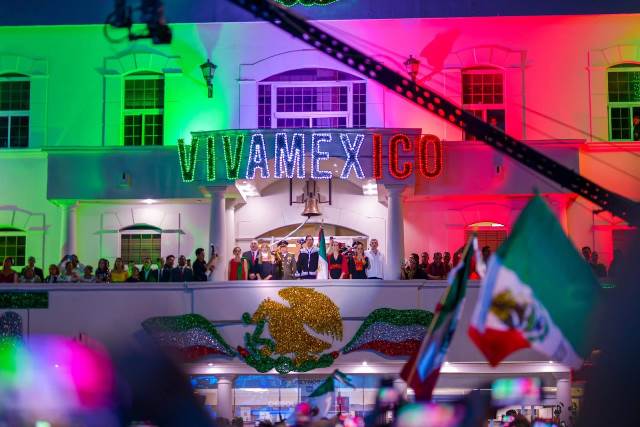 Reynosa, Tam.- El Presidente Municipal Carlos Peña Ortiz dio la noche de este lunes 15 de septiembre, por cuarta ocasión, el Grito de la Independencia de México, desde el balcón del Palacio del Gobierno local, acompañado por el Coronel Israel González Alatorre, representante del General DEM, Guillermo Arellano Morales, Comandante de la Octava Zona Militar, por la Senadora Maki Esther Ortiz Domínguez y las Diputadas y Diputados, Casandra Priscila De los Santos Flores, Claudia Alejandra Hernández Sáenz y Juan Carlos Zertuche Romero.