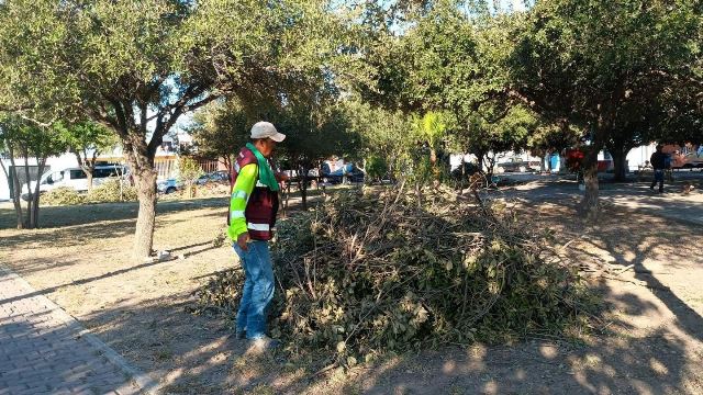 – Plaza pública en la colonia Integración Familia, donde se realiza corte de maleza, limpieza general y poda de árboles.