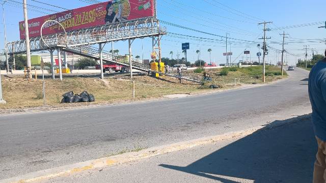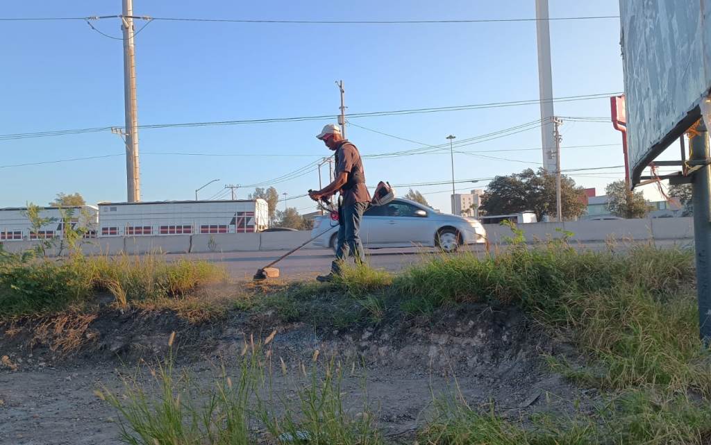 Libramiento Monterrey, entrada al Parque Industrial del Norte, se avanza en el corte de maleza para mantener la zona libre de obstáculos y mejorar la visibilidad en la entrada al complejo.
