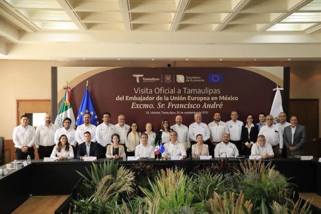 Ciudad Victoria, Tamaulipas.- El embajador de la Unión Europea en México, Francisco André, destacó el trabajo del gobernador Américo Villarreal para crear las condiciones de seguridad que permiten tener en Tamaulipas el clima idóneo de confianza para la inversión y el desarrollo empresarial.