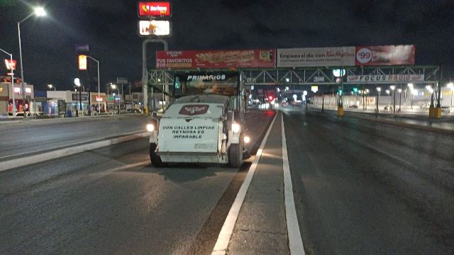 Reynosa, Tam.- Con la finalidad de agilizar las actividades de limpieza y mantenimiento de la ciudad, el Presidente Municipal Carlos Peña Ortiz dio instrucciones a Servicios Públicos, a cumplir parte de su bitácora de trabajo en horario nocturno.De esta forma, las cuadrillas municipales ejecutaron en esta jornada: