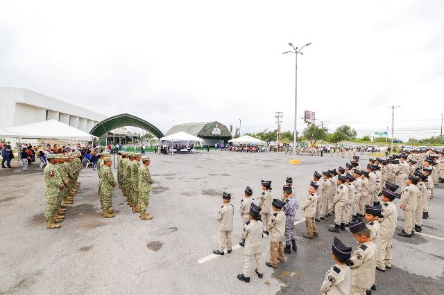 El destacado evento se desarrolló este lunes 30 de junio con la participación de elementos del Ejército Nacional, teniendo como importante fondo en la explanada del Polideportivo Reynosa, la Exposición Militar La Gran Fuerza de México.