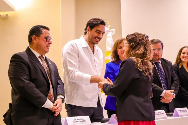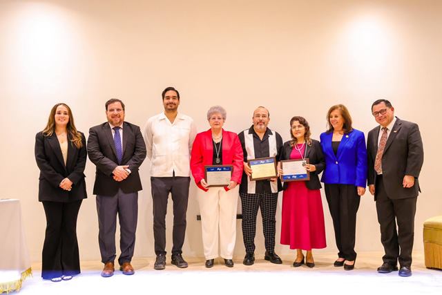 Entregó Carlos Peña Ortiz la Medalla «Dr. Jorge Brenes Araya» con el Secretario de Educación Miguel Valdez García y la Dra. Edith Cantú de Morett