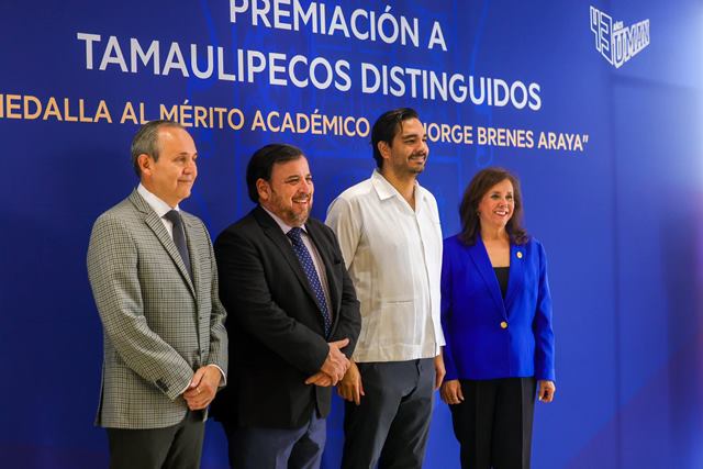 Reynosa, Tam.- El Presidente Municipal Carlos Peña Ortiz participó junto con el Secretario de Educación de Tamaulipas, Doctor Miguel Ángel Valdez García y la Rectora de la UMAN, Edith Cantú de Morett, en la entrega de la Medalla al Mérito Académico «Dr. Jorge Brenes Araya», en la XXIX Premiación a Tamaulipecos Distinguidos.
