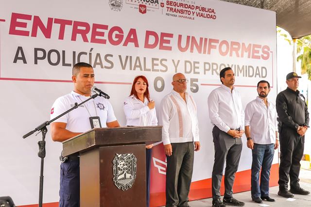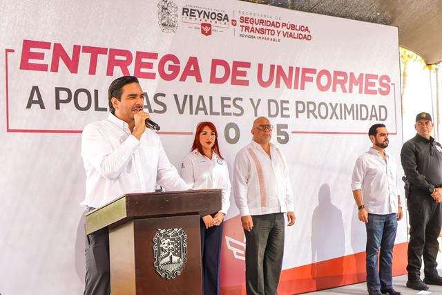 En el evento, el Alcald expresó que: «con estos uniformes, las Policías en Reynosa obtendrán más confianza en su identidad con los ciudadanos, y se comprometió a seguir entregando beneficios a ambas corporaciones para garantizar la seguridad y el bienestar de todos los reynosenses «, dijo, acompañado por el Secretario de Seguridad Público, Tránsito y Vialidad, Geovanni F. Barrios Moreno; la Directora de Tránsito, Iris A. Chavira Ríos y el Contralor Ernesto Gómez De la Peña.