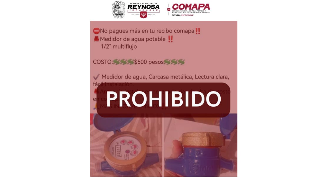 Reynosa, Tam.- La Comisión Municipal de Agua Potable y Alcantarillado de Reynosa informa a la ciudadanía sobre publicaciones en redes sociales en las que se ofertan medidores de agua que no corresponden a los equipos oficiales del organismo.