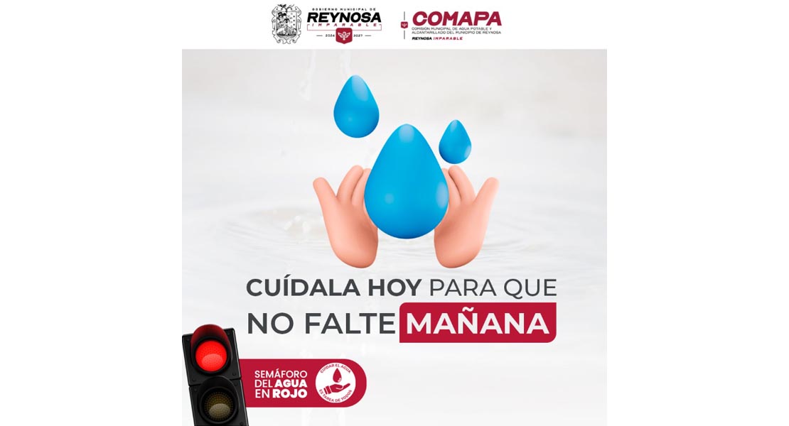 Reynosa, Tam.- La Comisión Municipal de Agua Potable y Alcantarillado de Reynosa hace un llamado urgente a toda la ciudadanía para redoblar las acciones de cuidado y uso responsable del agua, ante la importancia de preservar este recurso. Con el semáforo del agua en rojo, es fundamental que cada habitante contribuya a evitar el desperdicio, adoptando hábitos que permitan garantizar el suministro en los hogares y comunidades de nuestra ciudad.
