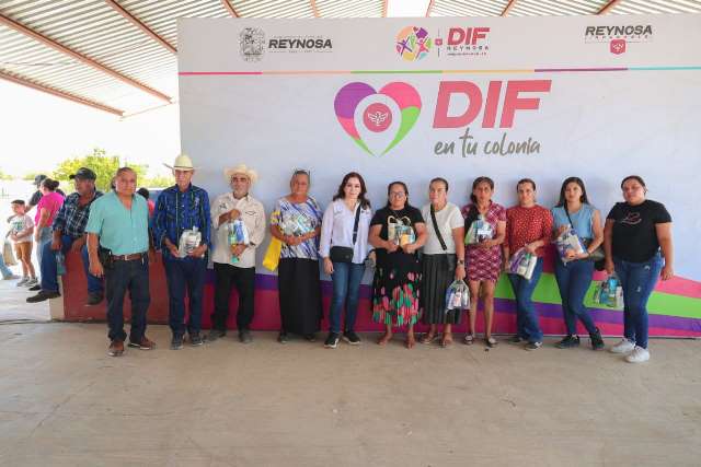 Reynosa, Tam.- Habitantes del ejido Pancho Villa y comunidades vecinas expresaron su agradecimiento al Gobierno Municipal que encabeza el Alcalde, Carlos Peña Ortiz y al Sistema DIF-Reynosa, que preside Carlos Luis Peña Garza, por llevar la brigada “DIF en Tu Colonia”, la cual acercó de manera gratuita servicios médicos, asesorías, apoyos alimentarios, artículos de limpieza y más, de gran beneficio para las familias del campo.