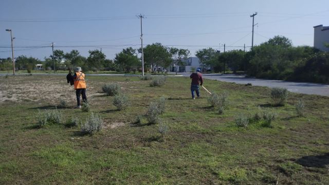 Reynosa, Tam.- Por instrucciones del Alcalde Carlos Peña Ortiz, cuadrillas municipales trabajaron en la limpieza de la plaza del fraccionamiento Sinaí, como parte de los esfuerzos para mantener espacios públicos limpios y seguros para las familias reynosenses.