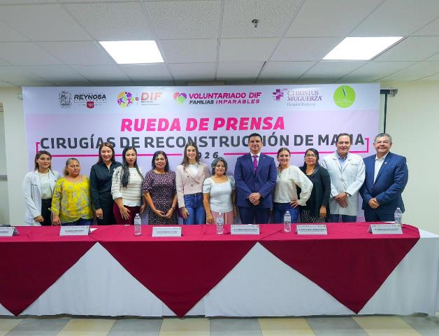 Reynosa, Tam.- Reafirmando el compromiso con la salud y el bienestar de las mujeres, el Sistema DIF-Reynosa que preside Carlos Luis Peña Garza, informó que para la Campaña de Reconstrucción de Mama 2026 ya fueron seleccionadas 2 mujeres que recibirán de manera totalmente gratuita su cirugía de reconstrucción de mama con implante, las intervenciones quirúrgicas están programadas para los días 18 y 19 de febrero y contarán con la valoración médica, intervención y seguimiento postoperatorio del cirujano plástico Vidkar Iván Campos Martínez, así como con el apoyo solidario de Christus Muguerza Hospital Reynosa.
