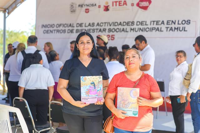 Reynosa, Tam.- El Presidente Carlos Peña Ortiz dio el Inicio Oficial de las Actividades del ITEA en los Centros de Bienestar Social Municipal TAMUL 2025, acompañado por la Directora del Instituto Tamaulipeco de Educación para Adultos, Gloria Guadalupe González González.