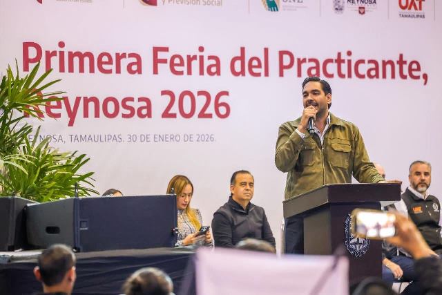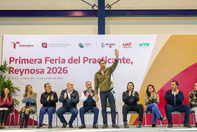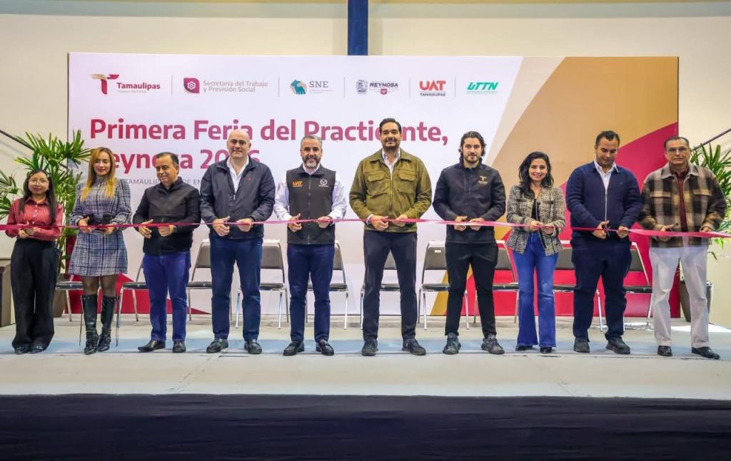Reynosa, Tam.- Al inaugurar el Presidente Municipal Carlos Peña Ortiz, con el Secretario de Trabajo y Previsión Social de Tamaulipas, Luis Gerardo Illoldi Reyes, la «Primera Feria del Practicante Reynosa 2026», invitó a los jóvenes estudiantes a seguir preparándose, «nosotros queremos que sean muy exitosos porque hoy México tiene muchas carencias, pero si a ustedes les va bien a toda la sociedad le va a ir mejor».