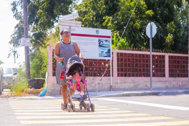 «Quiero comentarles que aquí en la colonia del Maestro, esta calle Agapito Cepeda, se hicieron dos cuadras de esta obra que iniciamos el 2 de mayo de este año», dijo el Presidente Municipal a las familias del sector representadas por la señora Alejandrina Silva Zamora.