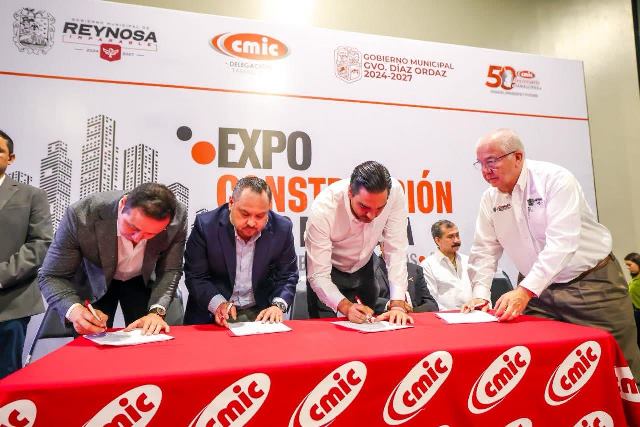 Reynosa, Tam.- La Delegación Tamaulipas de la Cámara Mexicana de la Industria de la Construcción, CMIC, celebró con el Alcalde Carlos Peña Ortiz, su 50 Aniversario, con la presencia de Pablo Eduardo Haro Panduro, dirigente estatal y del dirigente local, Roberto Aviles Arizpe; Expo Construcción CMIC Reynosa 2025 reunió a expositores de Servicios y productos del ramo.