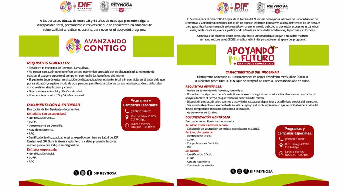 Para renovar deben acudir a las instalaciones del DIF Municipal, ubicada en Boulevard Hidalgo número 1900, en la colonia Hidalgo, para más información marcar a los teléfonos 8999230432 extensión 128.