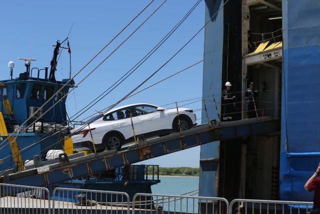 Luego de dar el banderazo al embarque de los primeros vehículos que ingresaron al buque «Integrador», anclado en el muelle del puerto, y tras recibir el título de concesión que autoriza iniciar operaciones portuarias, de manos del almirante José Barradas Cobos, subsecretario de Marina Mercante, el gobernador aseguró que, a partir de este día, Tamaulipas se convierte en la nueva frontera marítima de México.