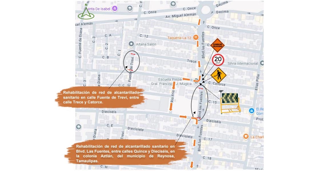 Las maniobras se llevarán a cabo en dos puntos específicos de este sector: sobre el bulevar Las Fuentes, entre calles Quince y Dieciséis, y en la calle Fuente de Trevi, entre calles Trece y Catorce. Debido a estas labores, ambas vialidades permanecerán cerradas a la circulación vehicular, por lo que se recomienda a las y los conductores tomar rutas alternas mientras se desarrollan los trabajos.