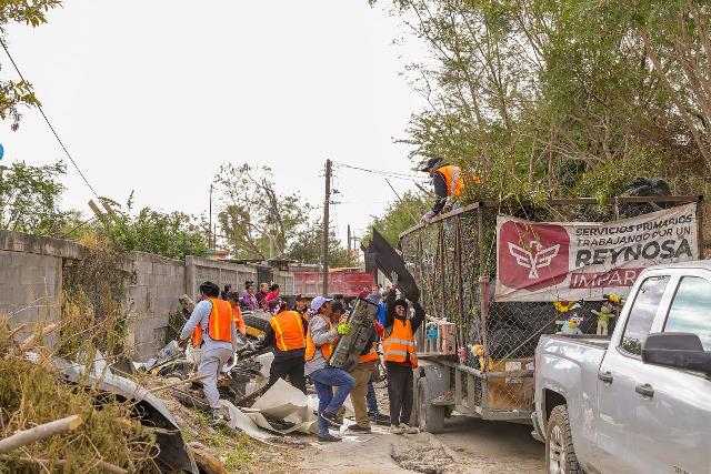 Reynosa, Tam.- El Alcalde Carlos Peña Ortiz visitó la colonia Lázaro Cárdenas, donde a través del Gobierno Municipal dio inicio a una intensa Jornada de Limpieza Imparable, que incluye la descacharrización de todo este sector, que llevan a cabo trabajadores de la Secretaría de Servicios Públicos.