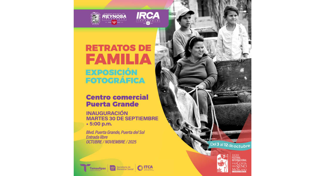 Reynosa, Tam.- Siguiendo las instrucciones del Alcalde Carlos Peña Ortiz, el Instituto Reynosense para la Cultura y las Artes invita a la inauguración de la exposición fotográfica Retratos de Familia.