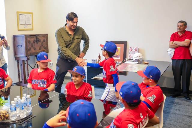Reynosa, Tam.- El equipo de la Liga Infantil de Beisbol Treviño Kelly, Categoría Menor, visitó al Alcalde Carlos Peña Ortiz para saludarlo e invitarlo a la inauguración de su Torneo Nacional que se llevará a cabo a en Reynosa, a partir de este lunes 23 de junio con 15 equipos.