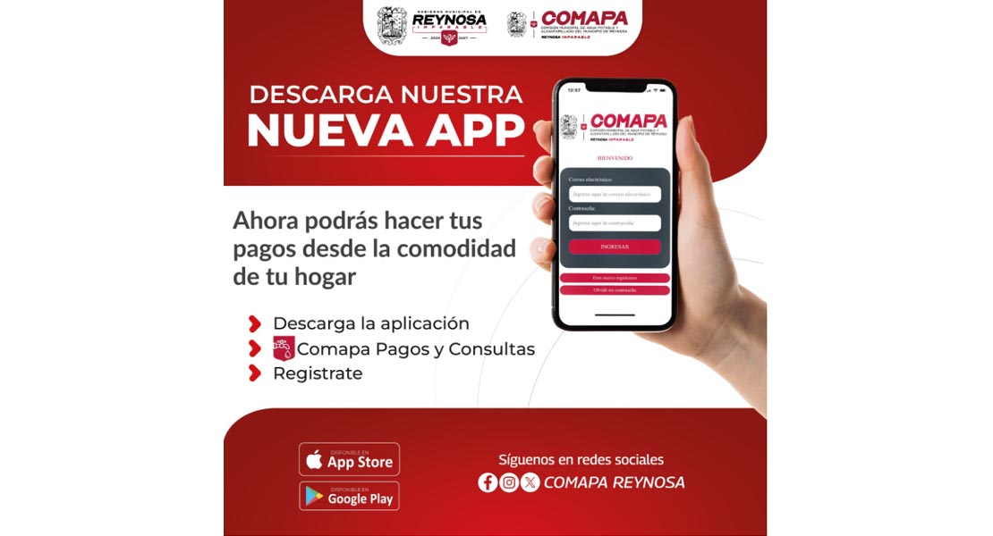 Reynosa, Tam.- La Comisión Municipal de Agua Potable y Alcantarillado de Reynosa presenta su nueva APP Móvil, diseñada para brindar mayor comodidad a las y los usuarios al momento de realizar sus pagos y consultas relacionados con el servicio.