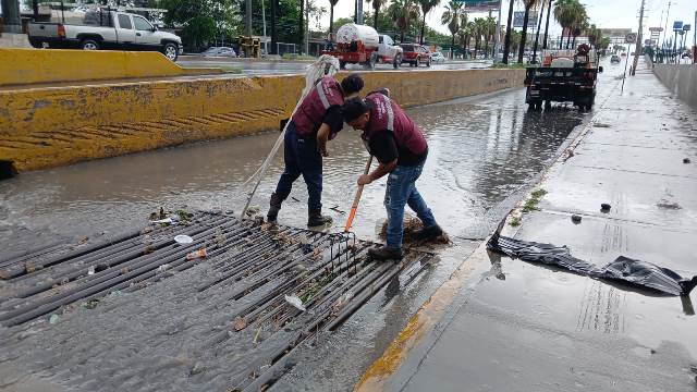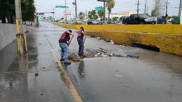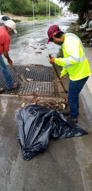 Reynosa, Tam.- El Presidente Municipal Carlos Peña Ortiz instruyó a la Secretaría de Servicios Públicos a ejecutar labores de limpieza en instalaciones pluviales de la ciudad, debido a las lluvias diarias. Algunas de las actividades realizadas incluyen: